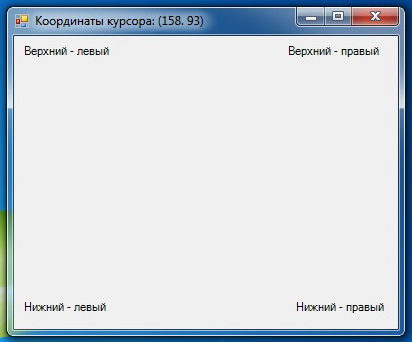 Программа после нажатя на форме мыши определяет координаты курсора